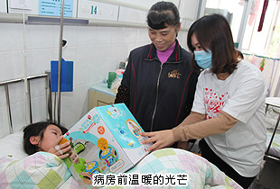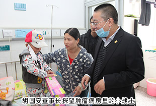 “我打心底的佩服孩子們,佩服他們頑強(qiáng)的生命意志,在他們的眼中,就算是黑夜也同樣可以看見彩虹,這不是奇跡,一種對(duì)生命的信念。這里是一個(gè)大家庭,和諧、溫馨、充滿愛,正是這種愛讓家長(zhǎng)和孩子們充滿信心與病魔作斗爭(zhēng),并一次又一次的取得勝利,培養(yǎng)出這些勇敢的小戰(zhàn)士!”胡國(guó)安董事長(zhǎng)輕輕抱起一名3歲多的白血病患兒,一席話,深深感染著周圍的每一個(gè)人。