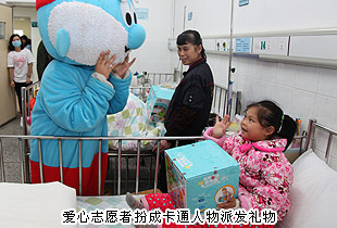 為了給這些特殊的孩子帶來(lái)快樂(lè),為了鼓勵(lì)他們繼續(xù)與疾病抗?fàn)?,綠之韻慈善基金給“生命小戰(zhàn)士們”送來(lái)了愛心慰問(wèn)金,帶來(lái)了圖書、文具、積木、滑梯等各式各樣的禮物,給兒科醫(yī)學(xué)中心的工作人員帶來(lái)了慰問(wèn)物資。兒童醫(yī)學(xué)中心活動(dòng)室里,胡國(guó)安董事長(zhǎng)、勞嘉副總裁帶領(lǐng)著愛心經(jīng)銷商張建軍、胡勝輝以及志愿者們和孩子們一起玩游戲、一起歌唱、一起跳舞、一起拍照、一起寫下彼此的心愿……活動(dòng)現(xiàn)場(chǎng),不論是9個(gè)月大的幼兒還是13歲的兒童,他們?cè)诿鎸?duì)鏡頭的時(shí)候,馬上會(huì)露出勝利者的微笑,并舉起雙手作出勝利的動(dòng)作。