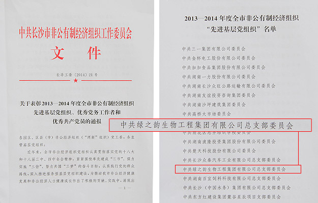 會(huì)議學(xué)習(xí)貫徹了中共中央、中共湖南省委、中共長(zhǎng)沙市委黨的群眾路線教育實(shí)踐活動(dòng)總結(jié)大會(huì)的精神,對(duì)全市非公經(jīng)濟(jì)組織教育實(shí)踐活動(dòng)進(jìn)行了總結(jié)。中共長(zhǎng)沙市委常委、市委統(tǒng)戰(zhàn)部部長(zhǎng)文樹勛,市政協(xié)副主席、市工商聯(lián)主席彭繼球參加會(huì)議。會(huì)上,作為長(zhǎng)沙市非公有制經(jīng)濟(jì)企業(yè)中黨的群眾路線實(shí)踐教育學(xué)習(xí)典范,綠之韻黨總支部憑借一系列優(yōu)秀黨建、團(tuán)建工作榮獲2013—2014年度長(zhǎng)沙市非公有制經(jīng)濟(jì)組織“先進(jìn)基層黨組織”榮譽(yù)稱號(hào),綠之韻集團(tuán)黨總支部書記許達(dá)仲、副書記羅婷出席會(huì)議并接受表彰。