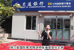交通銀行瀏陽支行副行長何曼曼在揭幕儀式上發(fā)表致辭。她對綠之韻成立11周年表示熱烈祝賀,并對此次合作寄予厚望。她表示:多年來,交通銀行和綠之韻集團一直保持著非常好的合作關系。今年,為了給廣大經(jīng)銷商提供更人性化的服務,綠之韻向我行申請在集團公司設立自助銀行,這是全省極為罕見的專門為一個公司而建設自助銀行,在這個過程中,得到了交通銀行湖南省分行的高度重視,得到了綠之韻公司的大力支持。今天,交通銀行綠之韻自助銀行正式開業(yè)了,這意味著我們雙方的合作將更加緊密?!敖?jīng)濟活,金融活”。今天工業(yè)園的發(fā)展日新月異,成為了瀏陽經(jīng)濟增長的主力軍,交通銀行瀏陽支行將繼續(xù)做好網(wǎng)點布局工作,為瀏陽企業(yè)和市民提供更加優(yōu)質(zhì)、更專業(yè)的服務。