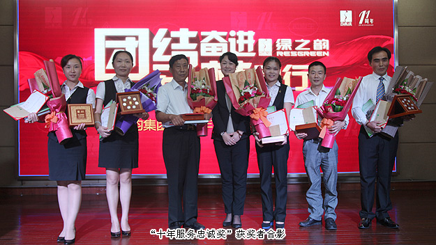 最后,綠之韻集團(tuán)胡國安董事長發(fā)表了重要講話,他向五年服務(wù)英才獎(jiǎng)、十年服務(wù)忠誠獎(jiǎng)獲得者,以及所有員工的辛勤付出表示誠摯的謝意。創(chuàng)立之初,綠之韻就將“家”文化納入到企業(yè)文化體系,將打造“最具幸福感企業(yè)”作為行動(dòng)目標(biāo),竭力讓員工、經(jīng)銷商和企業(yè)不斷成長,不斷學(xué)習(xí),不斷成功,契合共榮,同享精彩。他指出,未來三年,綠之韻將要努力做好三件事情:一是進(jìn)一步提升公司企業(yè)文化,只有文化的累積與潤澤才能形成強(qiáng)大的凝聚力和戰(zhàn)斗力,推動(dòng)企業(yè)不斷向前發(fā)展;二是以產(chǎn)品為導(dǎo)向,要研制、開發(fā)出獨(dú)一無二、具有自主知識(shí)產(chǎn)權(quán)、具備核心競爭力的產(chǎn)品,真正實(shí)現(xiàn)“依靠拳頭產(chǎn)品打天下”的發(fā)展目標(biāo);三是加強(qiáng)教育培訓(xùn)工作,不斷壯大講師隊(duì)伍,提升教育水平,豐富培訓(xùn)課程,在同行業(yè)競爭中立于不敗之地。同時(shí),綠之韻將積極推進(jìn)“八大戰(zhàn)略”,希望每一位綠之韻人明確目標(biāo)、堅(jiān)定信心、團(tuán)結(jié)協(xié)作,充分發(fā)揮出自己的聰明才智,實(shí)現(xiàn)自己的夢想,為綠之韻成為“最受尊敬的百年企業(yè)”而不懈奮斗!