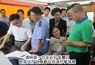 2014年8月14日,在湖南省政協(xié)黨組副書記、副主席武吉海的帶領(lǐng)下,“工商企業(yè)登記制度改革”民主監(jiān)督調(diào)研組一行先后深入初始創(chuàng)業(yè)企業(yè)、長(zhǎng)沙市岳麓區(qū)政務(wù)中心、長(zhǎng)沙市政務(wù)中心服務(wù)大廳考察指導(dǎo),并長(zhǎng)沙市政協(xié)會(huì)議廳召開(kāi)現(xiàn)場(chǎng)辦公座談會(huì),匯報(bào)交流,查找問(wèn)題,提出建議,部署下一步工作安排。