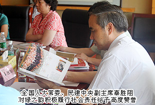 全國人大常委、全國人大財(cái)經(jīng)委員會(huì)副主任、民建中央副主席、著名經(jīng)濟(jì)學(xué)家辜勝阻認(rèn)真聽取并記錄了胡國安董事長的匯報(bào)內(nèi)容,對綠之韻集團(tuán)的經(jīng)營理念、產(chǎn)品研發(fā)、非公黨建和黨的群眾路線教育實(shí)踐活動(dòng)成果給予了充分認(rèn)可和高度贊譽(yù);對綠之韻集團(tuán)在經(jīng)濟(jì)發(fā)展大環(huán)境下積極轉(zhuǎn)型;對綠之韻情系民生、心憂天下,產(chǎn)業(yè)扶貧,教育扶貧以及每年度向社會(huì)發(fā)布一本《企業(yè)社會(huì)責(zé)任報(bào)告》的成功做法表示出濃厚興趣和高度贊譽(yù)。