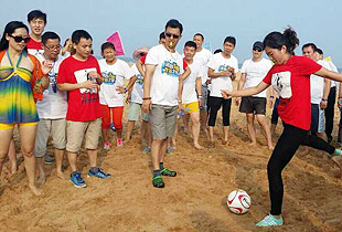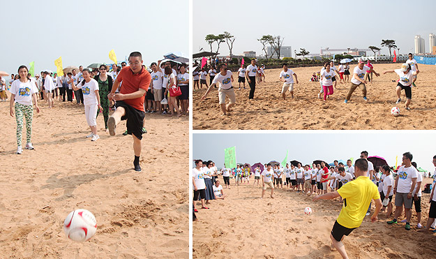 舉世矚目的足球世界杯在巴西激戰(zhàn)正酣,一場綠之韻精英的沙灘足球賽也隨之拉開戰(zhàn)幕。胡國安董事長親自為本場比賽開球,參加比賽的十三個VIP團激情碰撞,作對廝殺,光著腳在松軟的沙灘上帶球、過人、射門的感覺與草坪上截然不同,比賽中參賽的家人們經常出現沙土飛揚,人仰馬翻的場景,相當有趣味。臨近傍晚,經過將近四個多小時小組賽、淘汰賽、半決賽、決賽的緊密、激烈賽程,4個VIP團脫穎而出。最終,綠之韻精英VIP5團、VIP2團、VIP7團和VIP11團,分列冠亞季軍。VIP5團隊員在比賽后慶祝勝利時將奪冠功臣夏運良拋向空中,收獲了全場家人們熱烈的掌聲和尖叫聲!