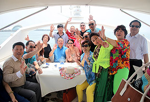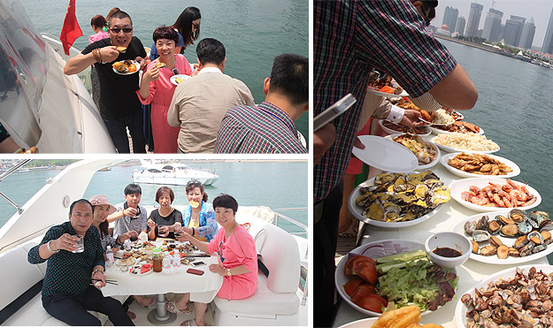 驕陽海風下,游艇載著綠之韻精英們在碧波萬頃,一望無際的海上破浪前行。三艘游艇沿著青島著名景觀航線“奧帆中心——五四廣場——太平角——第二海水浴場——八大關——匯泉灣——棧橋——海軍博物館——團島灣——跨海大橋——北海船廠”,綠之韻精英們有的欣賞青島美景,有的悠閑聊天,有的暢享美食,有拍照合影,不亦樂乎。