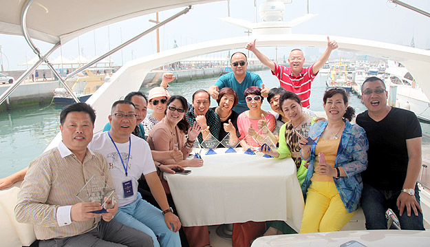 6月23日,碧空如洗,海風拂面,山東青島2008年奧帆賽訓練基地內,游人如織,熱鬧非凡,2014綠之韻至尊皇冠游艇俱樂部(青島航線)出航儀式圓滿舉行。這是一次高規(guī)模、高檔次、高品位的綠之韻精英聚會。在歡呼聲與掌聲中,在美麗藍莓天使的簇擁下,綠之韻集團董事長親自為曹鳳華、徐華、張建軍、張吉慶、韓曉鳴、蘇龍輝、鄭百合、黃翔、李政沅、劉鳳軍、劉建平、劉文麗、孫彩虹、李長宇、陳平、李平首批16位綠之韻游艇俱樂部特邀會員頒發(fā)了象征無上榮耀的水晶紀念牌。