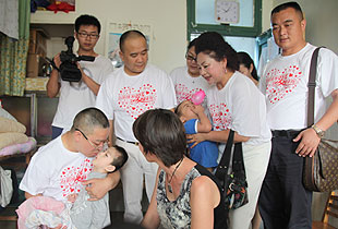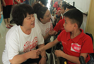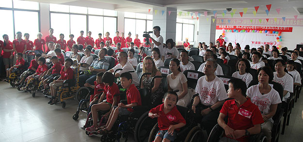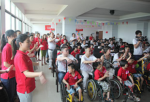 “福利院收養(yǎng)的孩子95%以上都是殘障兒童,其中腦癱又占絕大多數(shù),還有一些唇腭裂、肢體殘疾的患兒”,在衡陽服務(wù)了八年的英國籍、ICC衡陽春天福利院負責(zé)人愛麗向志愿者們介紹。在這里,還有許許多多的外教,他們遠離祖國無償義務(wù)服務(wù)在這里,這種無私的精神讓人欽佩和尊敬。在這里,也還有許許多多的“特護媽媽”,他們每天都在照顧著孩子,用自己的滿腔熱情和愛心,無怨無悔當(dāng)好孤殘兒童的家人,讓每位孤殘兒童都享受到家庭的溫馨、濃濃的親情;他們盡職盡責(zé)當(dāng)好老師,為每位孤殘兒童上好人生的第一課,用真情真愛為孤殘兒童撐起了一片藍天。