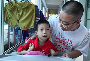 隆隆,患有脊柱裂,身體不是很好,抵抗能力差,很容易感冒,2006 年10 月7 日轉(zhuǎn)入春天服務(wù)中心。今年9月份以前他每天都在院內(nèi)的培智一班上課,他接受能力很強,反應(yīng)也很靈敏,學(xué)習(xí)成績很棒,一直是班上的佼佼者,現(xiàn)在已經(jīng)被飛雁小學(xué)錄取。