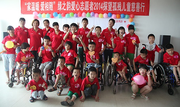 這些孩子,都是折翼的天使。當(dāng)綠之韻愛心志愿者來到孩子們的生活區(qū),才發(fā)現(xiàn)還有更多重癥的孤殘兒童等待著救助。他們或被綁在椅子上,或孤單地躺在搖籃里,或茫然地對著天花板發(fā)呆……這不得已的舉措,全是因為身體的殘缺。胡國安董事長輕輕抱起一名三歲多的重度腦癱兒童,他的特護老師說:孩子很乖,也很可憐。一句話,讓一行的志愿者濕了眼眶。退出房間,胡國安董事長說:“我們要給予弱勢群體更多的關(guān)注,不僅是兒童福利院的孩子,還有特殊教育學(xué)校的孩子,他們需要更多的關(guān)注,需要更多的愛。所有的綠之韻人,都要履行責(zé)任,無私地去幫助他們!”