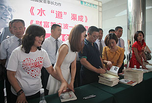 一個(gè)人、一支筆、一段故事,《水“道”渠成》解碼人生智慧。胡國(guó)安董事長(zhǎng)傾盡十年心血、以綠之韻精英團(tuán)隊(duì)、核心文化“水的精神”為精髓,著力打造的成功智慧書(shū)籍《水“道”渠成——成就一生的智慧密碼》震撼面市以來(lái),一直深受廣大讀者、粉絲狂熱追捧,市場(chǎng)反映異?;鸨?。2014年6月6日,繼北京、湖南、江蘇、上海等多個(gè)省市的巡回簽售會(huì)之后,胡國(guó)安董事長(zhǎng)應(yīng)山東地區(qū)廣大讀者、粉絲的強(qiáng)烈要求,現(xiàn)身山東濰坊參加《水“道”渠成》讀者簽售見(jiàn)面會(huì),1200多名鐵桿擁躉很早就在簽售儀式現(xiàn)場(chǎng)排起了長(zhǎng)龍,爭(zhēng)相一睹“水文化”之集大成者董事長(zhǎng)胡國(guó)安先生的風(fēng)采,不到一個(gè)小時(shí)1000多冊(cè)《水“道”渠成》瞬間售罄。