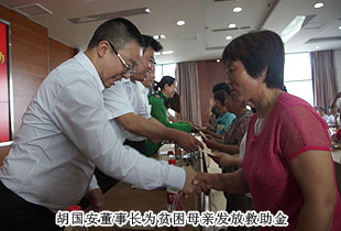 母親不應(yīng)屬于貧困?;貓?bào)母愛(ài),幫助她們擺脫貧窮和病痛,應(yīng)是每個(gè)社會(huì)成員的最新責(zé)任?!熬G之韻愛(ài)心行動(dòng),為貧困母親發(fā)放救助金”儀式上,綠之韻集團(tuán)董事長(zhǎng)胡國(guó)安與領(lǐng)導(dǎo)嘉賓一起為貧困母親代表家庭發(fā)放救助金,幫助她們樹(shù)立起生活的信心和希望。胡國(guó)安董事長(zhǎng)在講話中回憶了當(dāng)年自己家庭的貧寒以及母親在困難中不餒的堅(jiān)持,用自身的故事深情告訴現(xiàn)場(chǎng)的每一位貧困母親,綠之韻慈善基金愿以真誠(chéng)而執(zhí)著的努力,呼喚海內(nèi)外各界團(tuán)體、企業(yè)、個(gè)人同我們攜起手來(lái),架起一座愛(ài)的橋梁,共同幫助她們走出貧困,走向幸福!
