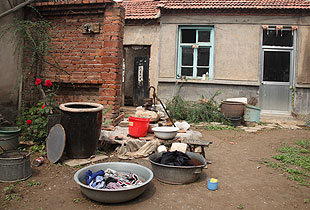 破舊的大門(mén)敞開(kāi)著,一位年事已高的婆婆正彎腰洗衣,院子里除了幾朵開(kāi)得正艷的花,毫無(wú)生機(jī)。見(jiàn)到綠之韻愛(ài)心志愿者一行的到來(lái),老婆婆艱難地起身,滿臉讓人心疼的笑意。資料顯示我們此行慰問(wèn)的對(duì)象叫王瑞芬,今年67歲。只是沒(méi)想到,眼前這位婆婆竟然就是我們尋找的主角,步履蹣跚,蒼老弱態(tài),分明超出了實(shí)際年齡。