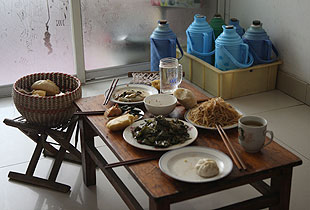 上百種藥瓶藥盒成為這個(gè)家庭最刺眼的標(biāo)簽。貧困母親郭明星,46歲,是全家人的支柱。來(lái)到這個(gè)家時(shí),他們正在準(zhǔn)備吃午飯。幾個(gè)包子、兩碟咸菜、一盤(pán)土豆絲,竟就是一家四口人的中餐。簡(jiǎn)單得沒(méi)法用詞語(yǔ)形容。