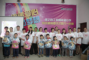 綠之韻捐助的第一所希望小學(xué)——綠之韻工業(yè)園希望小學(xué)里,標準化的教學(xué)大樓、平地而起的教學(xué)大樓,整潔干凈的學(xué)生食堂,寬敞明亮的學(xué)生宿舍,還有聲聲入耳的朗朗讀書聲,無不展現(xiàn)出蓬勃朝氣。誰能想到,十年前這所學(xué)校破損不堪的模樣。2004年10月19日,綠之韻公司捐助了這所希望小學(xué),兩年時間,綠之韻老屋希望小學(xué)引起了瀏陽生物醫(yī)藥園的關(guān)注,在當(dāng)?shù)卣膸椭聵藴驶男W(xué)拔地而起,2006年8月學(xué)校正式搬遷新址。至此之后,綠之韻集團每年都會與綠之韻工業(yè)園希望小學(xué)開展形形色色的歡慶的活動。2013年,綠之韻工業(yè)園希望小學(xué)再次求助,期望綠之韻集團幫助學(xué)校推進新課程改革,提升辦學(xué)水平,開設(shè)班班通建設(shè)項目。而綠之韻集團在得到該消息后,立即籌措5萬元多的現(xiàn)金以及部分愛心物資,為學(xué)校捐資解難。