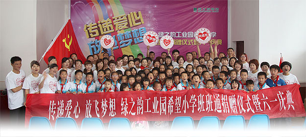 六一前夕,綠之韻集團綠之韻慈善基金再次傳遞夢想,放飛希望,向綠之韻集團曾經(jīng)捐助的第一所希望小學(xué)——綠之韻工業(yè)園希望小學(xué)伸出愛心之手,為貧困的孩子們提供救助。綠之韻集團董事常務(wù)副總裁勞嘉、綠之韻工業(yè)園希望小學(xué)黨支部書記羅玉明、綠之韻集團黨總支部書記許達仲以及50位來自瀏陽各地的愛心經(jīng)銷商、綠之韻黨團支部成員、與學(xué)生代表們歡聚一堂,歡度六一,共慶兒童節(jié)。