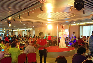 夜幕降臨,海岸亮起了燈火,在海風(fēng)的吹拂下,芭提雅變得神秘起來。大街上霓虹閃爍,旅人如織,處處回蕩著動感勁爆的音樂,充溢著肆無忌憚的美色誘惑。東方公主號的人妖表演,也是當(dāng)?shù)氐奶厣?,這里集中了泰國最漂亮的人妖,的確一個個都是風(fēng)情萬種的,才藝出眾,讓精英們享受到這里獨特的異域風(fēng)情。