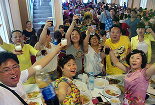 曼谷玉葉太空酒店建筑高度309米,總樓層數(shù)為88 層,是市內(nèi)最高的地標(biāo)性建筑。綠之韻精英們來到位于第76層BAIYOKE SKY旋轉(zhuǎn)餐廳享受國際自助餐。這里的自助餐包含各國風(fēng)味,品種繁多,鮮美的海鮮、綿蜜的甜品、豐富的熱帶水果……精英們一邊享用美食,一邊360度觀賞曼谷市容,1500平方公里的美景盡收眼前,妙不可言!