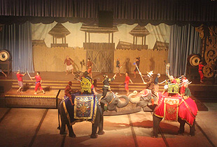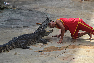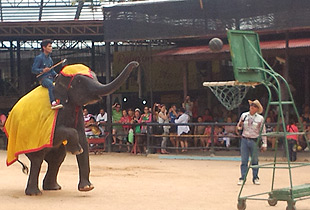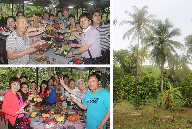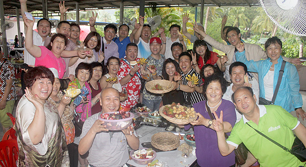 東芭樂園,占地面積1600多畝,是一個泰式鄉(xiāng)村風(fēng)格的休閑兼度假公園。園中有人工湖,水光瀲滟,小河繚繞于亭臺樓閣之間,樹木蔥籠,鳥語花香,景色如畫。園中設(shè)有文化村,是集中展示泰國民族文化的場所。園內(nèi)節(jié)目三大部分:一是泰國的民俗表演,二是大象表演,三是植物園。民俗歌舞很質(zhì)樸、很地道,表演者就是村寨中人;大象表演格外精彩。綠之韻精英們或看著表演,或與大象合影,或飲一口冰鎮(zhèn)的椰汁,各自用不同的方式享受著度假的閑適和快樂。