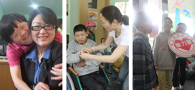 接著,石艷鳳還帶領(lǐng)大家參觀了整個中心,綠之韻集團董事常務(wù)副總裁,綠之韻慈善基金常務(wù)理事長勞嘉不時詢問孩子們的生活、護養(yǎng)、治療及康復(fù)情況,與孩子們交流。走到二樓教室,一位成功拼出完整卡通拼圖的孩子的歡呼聲引起了大家的注意。志愿者們情不自禁鼓起掌來,孩子們可愛的笑臉、綠之韻家人們真誠的贊揚定格此刻。在今天的晨光中心里,這樣的場面并不偶然,35位護理人員及老師的悉心照顧下,39位孤殘兒童幸福相依,其樂融融。