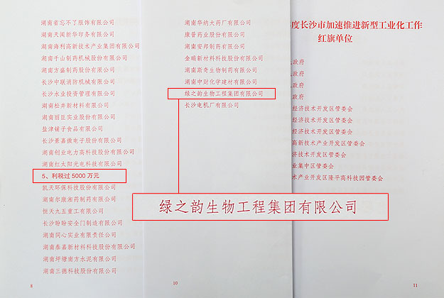 尤其值得關(guān)注的是,本次會(huì)議上綠之韻集團(tuán)再次被長(zhǎng)沙市人民政府光榮授予“利稅過5000萬元企業(yè)”榮譽(yù)稱號(hào),并被評(píng)定為“長(zhǎng)沙市知識(shí)產(chǎn)權(quán)戰(zhàn)略推進(jìn)工程優(yōu)秀試點(diǎn)企業(yè)”,將納入市政府優(yōu)先服務(wù)名單,在商標(biāo)注冊(cè)、專利申報(bào)及保護(hù)等方面得到重點(diǎn)扶持,全力支持做大做強(qiáng)做優(yōu)。
