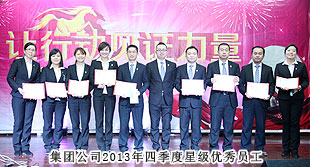 會議最大亮點當屬表彰環(huán)節(jié)。時間記錄了腳步,榮譽證明了努力,2013年表彰大會共設(shè)置“季度優(yōu)秀集體”“年度優(yōu)秀員工”“年度優(yōu)秀基層管理干部”“年度優(yōu)秀中層管理干部”“最佳成長獎”“最佳指導(dǎo)老師獎”等多個獎項。榮譽證書和水晶獎杯記載著榮譽,鐫刻著感動。表彰不僅是一份嘉獎,更是一次次回顧,回顧每一次突破與飛躍,為明天的奮斗添加更多的信心和力量!