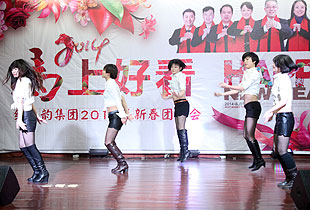 新春團拜會是綠之韻每一位員工年終狂歡的嘉年華,現(xiàn)場張燈結(jié)彩,彩球高掛,快樂的旋律,動感的舞蹈,開啟了期盼已久的文藝表演。有搞怪的反串模特秀,有深情的民歌演唱,有幽默的大話西游篇外篇,生動有趣的游戲互動……公司領(lǐng)導(dǎo)、各子公司及市場一線的代表們,各部門全員參與,整個會場洋溢著濃濃的喜慶氛圍。每個節(jié)目都凝聚了大家的心血和努力,演出效果也是毋庸置疑,笑聲掌聲此起彼伏。
