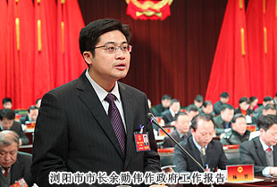 12日上午8時30分,大會在莊嚴的國歌聲中開幕。大會由瀏陽市人大常委會副主任孫建科主持。會議應到代表381名,因事因病請假6名,實到375名,符合法定人數(shù)。瀏陽市人民政府市長余勛偉作政府工作報告。報告全面回顧了2013年工作,提出了2014年政府工作的總體目標和主要措施。過去一年,瀏陽市緊緊圍繞“挺進三十強、再創(chuàng)新輝煌”目標,團結(jié)拼搏,克難奮進,扎實推進各項工作,較好地完成了市十六屆人大二次會議確定的各項目標任務(wù)。全年實現(xiàn)地區(qū)生產(chǎn)總值940億元,增長14.5%;完成財政總收入75.9億元,增長37.3%;完成固定資產(chǎn)投資568億元,增長30.5%;實現(xiàn)社會消費品零售總額179億元,增長13%;城鄉(xiāng)居民人均可支配收入達24120元。地區(qū)生產(chǎn)總值、工業(yè)總產(chǎn)值、財政收入等主要經(jīng)濟指標增速居長沙九區(qū)縣(市)第1位,城市創(chuàng)新能力居全國第48位、全省第1位,縣域經(jīng)濟與縣域基本競爭力挺進全國前50強,由第60位躍升至第47位,進位速度居全國百強之首。