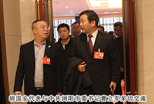 胡國安代表在與中共瀏陽市委書記曹立軍親切交流時,還表示:“2014年,我將牢牢把握團結(jié)、民主兩大主題,緊緊圍繞市委市政府的決策部署,切實履行職能,多思發(fā)展之計、多獻惠民之策、多促利民之事,充分發(fā)揮協(xié)調(diào)關(guān)系、匯聚力量、建言獻策、服務(wù)大局的人大代表作用,為盡快實現(xiàn)“挺進三十強、再創(chuàng)新輝煌”,率先全面建成小康社會目標作出新的貢獻!”