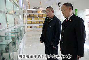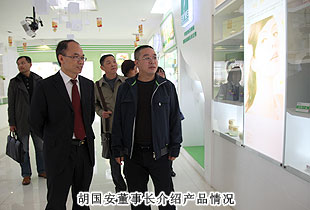 在綠之韻產(chǎn)品形象展廳,董事常務(wù)副總裁勞嘉向考察組一行介紹了綠之韻系列產(chǎn)品、產(chǎn)學(xué)研合作、企業(yè)文化等方面的相關(guān)情況。在集團(tuán)總部五樓會議廳,胡國安董事長向考察組一行介紹了今年10月隆重舉行的綠之韻集團(tuán)十周年盛典,匯報了社會責(zé)任、規(guī)范經(jīng)營、黨建工作等方面的相關(guān)情況。