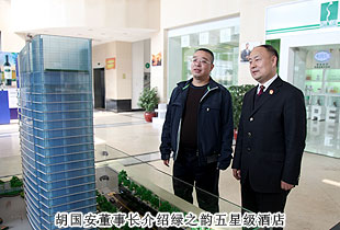 2013年12月13日,長沙市人民檢察院副檢察長祝珍明,長沙市中級人民法院黨組成員、執(zhí)行局局長范登峰一行蒞臨綠之韻集團(tuán)考察指導(dǎo)?!叭绾胃玫胤?wù)企業(yè)的發(fā)展”是本次調(diào)研指導(dǎo)的重點(diǎn)。在考察調(diào)研過程中,綠之韻集團(tuán)董事長胡國安、董事常務(wù)副總裁勞嘉陪同考察組參觀了綠之韻集團(tuán)總部,從綠之韻多功能產(chǎn)品形象展示廳,到科技展示中心及五星級酒店沙盤、黨建工作宣傳欄,再到員工辦公區(qū),胡國安董事長逐一介紹,考察組一行時而駐足詢問,時而微笑點(diǎn)頭、以示高度肯定和贊許。