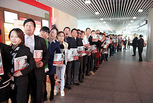 《水“道”渠成》一書,是綠之韻“掌舵人”胡國安董事長嘔心瀝血十年之久的傾力之作,綠之韻十周年華誕之際,甫一面市就備受廣大讀者追捧,市場(chǎng)反映十分強(qiáng)烈。2013年11月19日,胡國安董事長應(yīng)廣大讀者、粉絲的要求,蒞臨湖南黃花國際機(jī)場(chǎng)參加《水“道”渠成》讀者簽售見面會(huì),300多名鐵桿粉絲和擁躉一大清早就在簽售儀式現(xiàn)場(chǎng)排起長龍,爭相購買,一睹中國“水文化”之集大成者董事長胡國安先生的風(fēng)采,不到兩個(gè)小時(shí)近600冊(cè)《水“道”渠成》瞬間售罄。