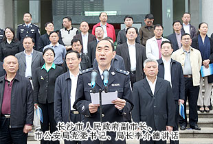 長沙市人民政府副市長、市公安局黨委書記、局長李介德發(fā)表了講話。李介德局長在講話中指出,按照公安部的統(tǒng)一部署,“警營開放周”活動(dòng)期間,省市公安機(jī)關(guān)治安系統(tǒng)各部門警營、警隊(duì)、辦公場所將面向社會(huì)統(tǒng)一開放,邀請(qǐng)各界人士和人民群眾走進(jìn)警營,了解治安管理工作,暢通警民溝通聯(lián)系渠道。公安機(jī)關(guān)作為服務(wù)部門,今后還將進(jìn)一步敞開大門,廣泛傾聽群眾的意見,對(duì)群眾提出的不滿意事情、問題進(jìn)行整改,更好地為人民群眾服務(wù)。