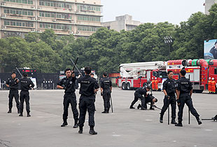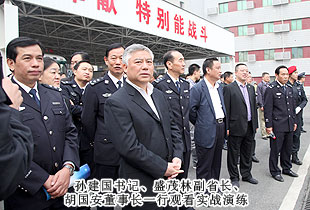 啟動(dòng)儀式現(xiàn)場,中共湖南省委常委、政法委書記、省公安廳廳長孫建國宣布湖南省公安機(jī)關(guān)“規(guī)范執(zhí)法警營開放周”活動(dòng)開始。孫建國書記、盛茂林副省長、胡國安董事長一行參觀了內(nèi)容豐富的活動(dòng)展區(qū)。在裝備展示區(qū),與會(huì)人員參觀了各警種的現(xiàn)場執(zhí)法儀、移動(dòng)警務(wù)通、警用服飾、槍械、單警裝備、警用車輛和消防裝備等。特警大隊(duì)隊(duì)員身穿特警服裝,全方位展示了特警隊(duì)員的颯爽英姿;治安大隊(duì)展示的各種槍械吸引了所有參觀人員。各展示臺(tái)民警耐心、細(xì)致講解了各種裝備的性能和作用,宣傳公安機(jī)關(guān)保護(hù)人民群眾的職責(zé)。在法律宣傳區(qū),除了展出全省公安機(jī)關(guān)執(zhí)法規(guī)范化建設(shè)成果、治安、禁毒、消防和交警等宣傳展板外,民警將大量宣傳法律法規(guī)、防范知識(shí)和執(zhí)法規(guī)范化建設(shè)成果宣傳畫冊(cè)等宣傳資料分發(fā)到與會(huì)人員手中,同時(shí)提供現(xiàn)場法律咨詢服務(wù)。接下來的警營開放周活動(dòng)期間,全省公安機(jī)關(guān)將繼續(xù)開展系列豐富多彩的警營開放活動(dòng)。