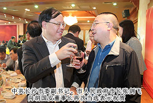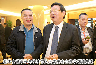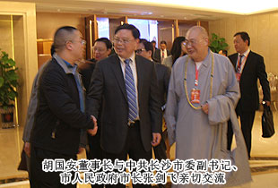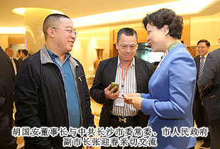 聯(lián)絡(luò)友誼,促進(jìn)合作;加強(qiáng)溝通,提供服務(wù)。本次會(huì)議開(kāi)設(shè)了“長(zhǎng)沙海聯(lián)投資創(chuàng)業(yè)論壇”板塊,對(duì)了長(zhǎng)沙市重大項(xiàng)目進(jìn)行了集中推介。在嘉賓訪談環(huán)節(jié),胡國(guó)安董事長(zhǎng)受邀參與座談,同省市領(lǐng)導(dǎo)、部分嘉賓面對(duì)面進(jìn)行了親切交流。長(zhǎng)沙市海外聯(lián)誼會(huì)第五屆理事會(huì)顧問(wèn)中共長(zhǎng)沙市委副書(shū)記、市人民政府市長(zhǎng)張劍飛,長(zhǎng)沙市海外聯(lián)誼會(huì)第五屆理事會(huì)會(huì)長(zhǎng)中共長(zhǎng)沙市委常委、統(tǒng)戰(zhàn)部部長(zhǎng)文樹(shù)勛向胡國(guó)安董事長(zhǎng)再次當(dāng)選副會(huì)長(zhǎng)表示衷心的祝賀,對(duì)胡國(guó)安董事長(zhǎng)在第四屆理事會(huì)任職期間,為長(zhǎng)沙海外聯(lián)誼事業(yè)的成長(zhǎng)進(jìn)步、為長(zhǎng)沙發(fā)展所付出的心血和作出的貢獻(xiàn)給予肯定和高度評(píng)價(jià),真誠(chéng)期盼胡國(guó)安董事長(zhǎng)一如既往地做好長(zhǎng)沙海外聯(lián)誼工作,繼續(xù)發(fā)揮影響和作用,與新一屆理事會(huì)全體理事一道,共同為推進(jìn)長(zhǎng)沙海外聯(lián)誼事業(yè),為實(shí)現(xiàn)長(zhǎng)沙“小康夢(mèng)”、“兩型夢(mèng)”、幸福夢(mèng)”作出新的貢獻(xiàn)!