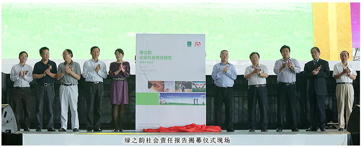 “行大道,民為本,立天下。”十年,僅僅是個嶄新的開始。發(fā)布會上,綠之韻再次發(fā)布社會責任報告,胡國安董事長、董事常務副總裁勞嘉和蒞臨現(xiàn)場的領導嘉賓上臺為《綠之韻2003—2013年度企業(yè)社會責任報告》進行揭幕儀式,贏得了臺下家人們一陣陣熱烈的掌聲。