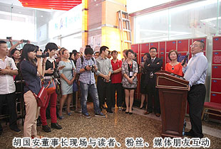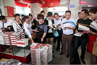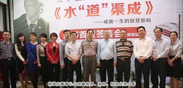 2013年10月8日下午14點(diǎn),董事長胡國安先生來到湖南長沙定王臺新華書店參加《水“道”渠成》首發(fā)儀式暨讀者簽售見面會,幾十位政界、商界、校友、中國商務(wù)出版社代表蒞臨圖書簽售現(xiàn)場傾力助陣,以致祝賀。簽售現(xiàn)場氣氛十分火爆,500多名讀者、粉絲慕名而來,很早就排起了長龍,爭相一睹“水文化”之集大成者董事長胡國安先生的風(fēng)采,不到兩個(gè)小時(shí)近千冊《水“道”渠成》銷售一空,許多后來的讀者、粉絲沒有買到新書。