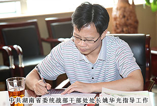 為了更好引導非公有制企業(yè)又好又快發(fā)展,破解企業(yè)發(fā)展中的瓶頸和難題,迅速融入“四化兩型”戰(zhàn)略,為湖南經(jīng)濟社會發(fā)展作出貢獻,2013年9月9日,中共湖南省委統(tǒng)戰(zhàn)部常務副部長譚平、中共湖南省委統(tǒng)戰(zhàn)部干部處處長姚華光一行蒞臨綠之韻集團考察調(diào)研。本次考察調(diào)研以中共湖南省委統(tǒng)戰(zhàn)部、省工商聯(lián)聯(lián)合發(fā)起的“萬企聯(lián)村?共同發(fā)展”活動為載體,深入調(diào)研了綠之韻集團的經(jīng)營現(xiàn)狀。綠之韻集團董事長胡國安、綠之韻集團市場營銷中心(中國區(qū))副總經(jīng)理諶獻軍、綠之韻集團黨總支書記許達仲等全程陪同調(diào)研。