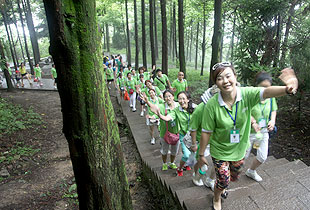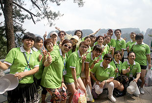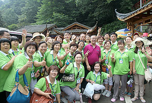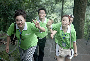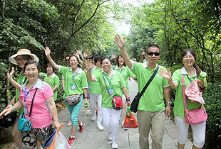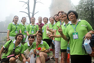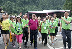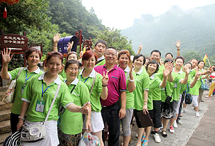 要想游覽十里畫廊、天子山、袁家界,欣賞張家界舉世聞名的俊山奇峰,乘坐“世界上最高、運(yùn)行速度最快、載重量最大的電梯”——百龍?zhí)焯菔亲詈玫倪x擇。雄、奇、險(xiǎn)、峻是對(duì)眼前綿延起伏的山巒最合適的形容,峻峭之石,如英武將帥;嵯峨之峰,似勇猛壯士。胡國(guó)安董事長(zhǎng)帶領(lǐng)伙伴們翻山越嶺,游覽采藥老人、五指峰、御筆峰、賀龍公園、神龜望天等景點(diǎn),并與伙伴們留影紀(jì)念。側(cè)看天子山,猶如一條連綿起伏的巨龍橫臥在地上,六千多個(gè)臺(tái)階蜿蜒直上。綠之韻伙伴們?cè)诤鷩?guó)安董事長(zhǎng)的引領(lǐng)下,一邊欣賞如畫的風(fēng)景,一邊嬉笑攀談,全然忘記了爬山的辛苦,一步一個(gè)鏗鏘的步伐,一步一個(gè)堅(jiān)實(shí)的腳印,無(wú)畏艱險(xiǎn)與艱辛,拾級(jí)而上,一路向前。登上山頂?shù)哪且豢?,伙伴們紛紛圍住胡?guó)安董事長(zhǎng)歡呼雀躍,興奮不已,心中油然而生縱覽群山、一呼百應(yīng)的豪情?!拔以僖膊挥X(jué)得爬山是件可怕的事情了。其實(shí),生活中我們會(huì)遇到很多比爬山更困難的事,但是只要你勇敢地邁出第一步,堅(jiān)持到底,就會(huì)克服困難,走出困境?!币晃痪G之韻伙伴說(shuō)道。