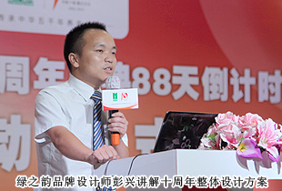 啟動儀式上,綠之韻集團品牌設計師彭興、綠之韻國際商學院講師宋沂芳為大家介紹了“十周年終端氛圍營造”活動的概況,包括“十周年品牌形象終端氛圍布置”、“十周年外場視覺設計布置方案及舞美設計發(fā)布”和“十周年紀念品開發(fā)”三個方面。在全場期待的目光中,十周年禮品實物:十周年紀念茶、十周年紀念圍巾、十周年發(fā)光紀念胸章、十周年卡片U盤、十周年紀念傘、十周年紀念多功能包(洗漱包)、十周年紀念幣,首次全景呈現(xiàn)在大家的眼前,迎來了全場一陣又一陣尖叫聲!