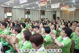 綠之韻十周年慶典總指揮、總裁助理方彥雄在致辭中表示:“十周年,是綠之韻一個新的起點。在這十年,我們因為相信選擇了綠之韻,因為夢想加入了綠之韻。在這十年中,我們肩負企業(yè)責任和歷史使命,歷經風雨和挫折,揮灑汗水和淚水,在胡國安董事長的引領下不斷造夢、逐夢和圓夢。從2003年,綠之韻肇始、發(fā)軔,到2013年,綠之韻蓄勢、崛起。十年彈指一揮間,我們匯集了各路精英人杰,創(chuàng)造了‘綠之韻’這個卓越的品牌和事業(yè)平臺,幫助成千上萬心懷創(chuàng)業(yè)初衷、渴望走向成功的普通人走上了夢想的舞臺,收獲了健康、快樂和幸福,實現(xiàn)了自己的人生價值。2013年,是綠之韻永續(xù)經營、永遠創(chuàng)業(yè),全面大踏步邁入大健康產業(yè)的發(fā)展元年。未來十年,只要我們秉承“水”的精神,統(tǒng)一思想認識、統(tǒng)一目標指向、統(tǒng)一行動步伐,不斷地創(chuàng)新、突破、跨越,就會取得比過去的十年更加輝煌的成就!”