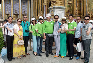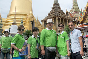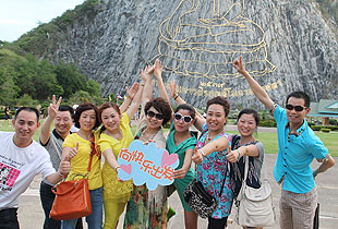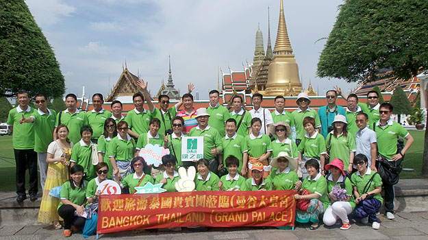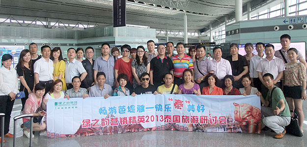2013年 05月23—28日,綠之韻營銷精英歡歌聚首、激情四溢,裹挾著快樂與榮耀共同度過了泰國6日精彩圓夢(mèng)之旅。23日,大家由專業(yè)領(lǐng)隊(duì)帶領(lǐng)乘坐國際航班直飛曼谷,接受泰國少女獻(xiàn)花,在泰國友人的熱情好客與浪漫氣質(zhì)的包圍下,綠之韻營銷精英2013泰國快樂之旅正式啟程了!